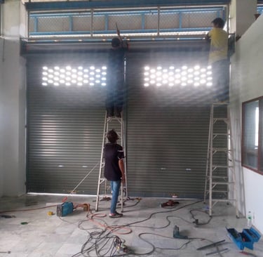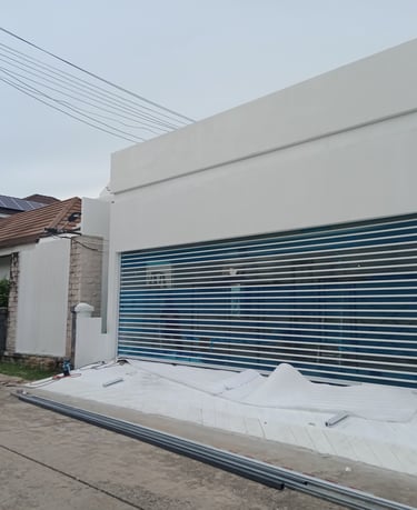 งานติดตั้งใหม่: ออกแบบและติดตั้งประตูม้วนสำหรับตึกแถว ร้านค้า และโรงงาน
